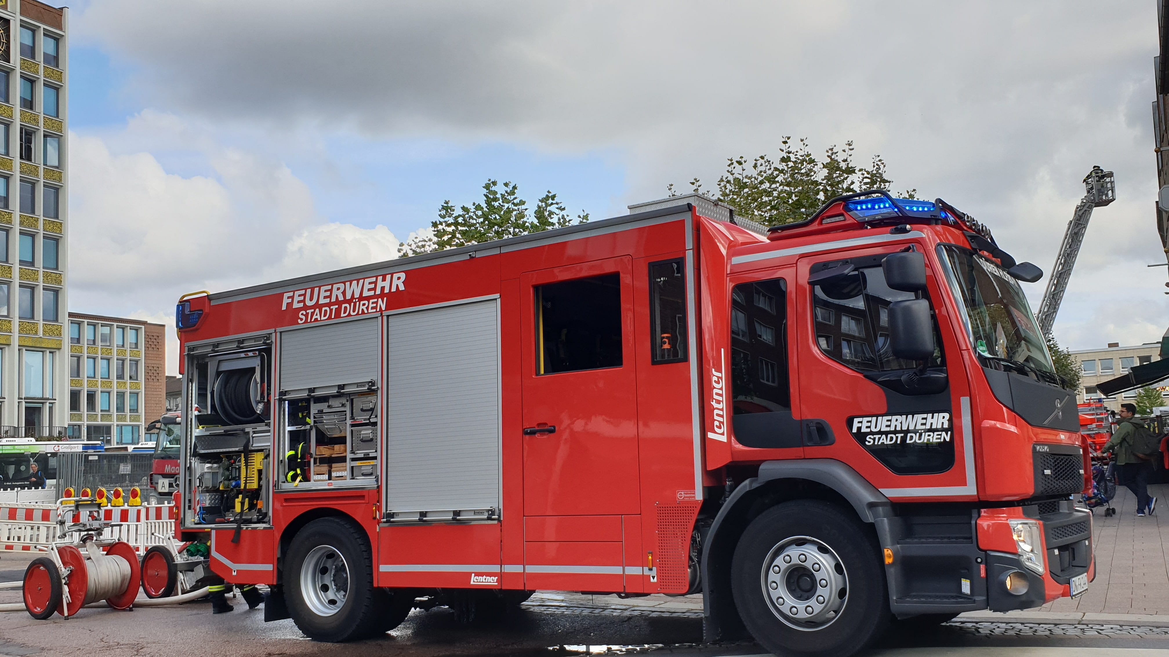Die Feuerwehr setzte zur Brandbekämpfung zwei Trupps unter Atemschutz mit der Vornahme von zwei C Rohren und einer Wärmebildkamera ein. Der Brand war nach schnell unter Kontrolle. Da sich das Brandgut zum Teil in der geschlossen Maschine befand, mussten die Feuerwehrkräfte einige Maschinenwände abbauen um alle Glutnester Ablöschen zu können. Ein Mitarbeiter der Firma zog sich bei Löschversuchen vor Eintreffen der Feuerwehr eine Schnittverletzung zu. Dieser wurde vom Rettungsdienst erst versorgt und zum Krankenhaus transportiert. Im Einsatz waren die Hauptwache, Löschzug Innenstadt, die Löschgruppen Arnoldsweiler und Birkesdorf mit insgesamt 26 Einsatzkräften.