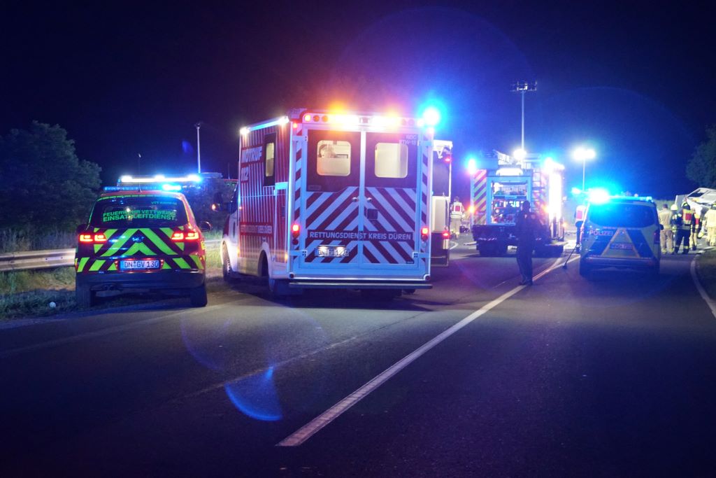 Vettweiß: Bei einem tragischen Unfallgeschehen an einem Kreisverkehr bei Vettweiß verstarb in der Nacht zum Samstag der Beifahrer eines Campingvans an den Folgen eines heftigen Zusammenstoßes. Zwei weitere Menschen wurden schwer verletzt.