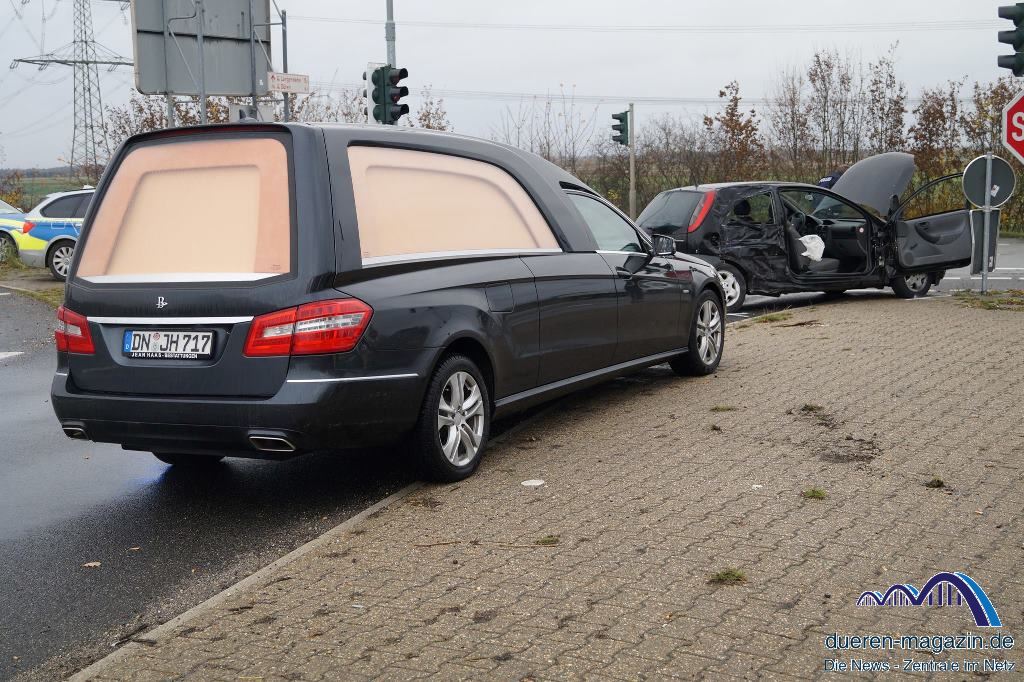 Nach dem Zusammenstoß mit dem Pkw kollidierte er weiterhin mit einem Motorrad, das auf der B 56 in Richtung Düren unterwegs war.